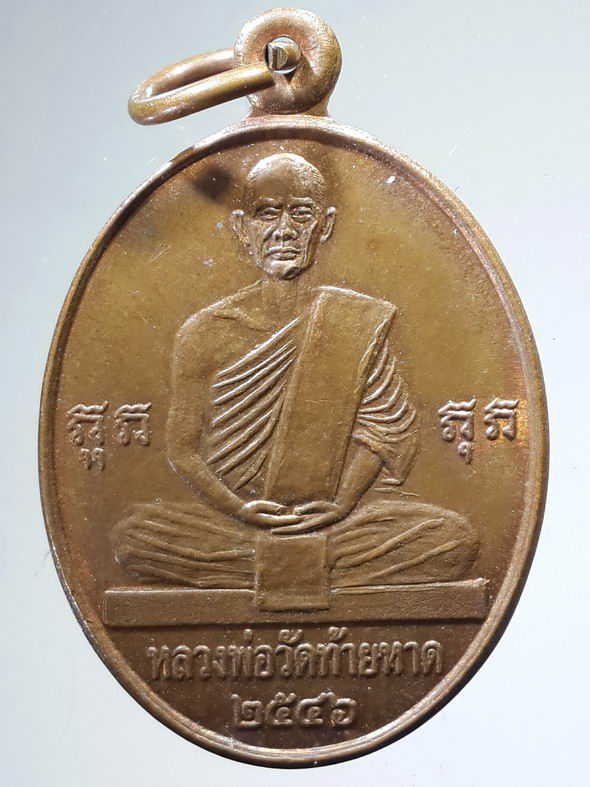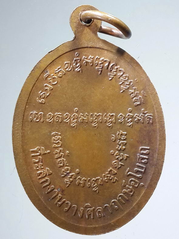 เหรียญหลวงพ่อวัดท้ายหาด สร้างปี 2546 ที่ระลึกงานวางศิลาฤกษ์อุโบสถ อักขระขอมด้านหลังแถวบนสุด เขียนว่า โสปิดอุดธังอัดโธโธอุดธังอัด แถวที่ 2 เขียนว่า โสอุดธังอัดโธโธอุดธังอัด