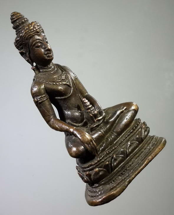 | ชื่อ : | 121 รูปหล่อพระพุทธถือหม้อน้ำมนต์ หลังพระนางพญา เนื้อนวโลหะ ไม่ทราบที หล่อตัน | | ประเภท : | เปิดให้บูชา | : รายละเอียด :