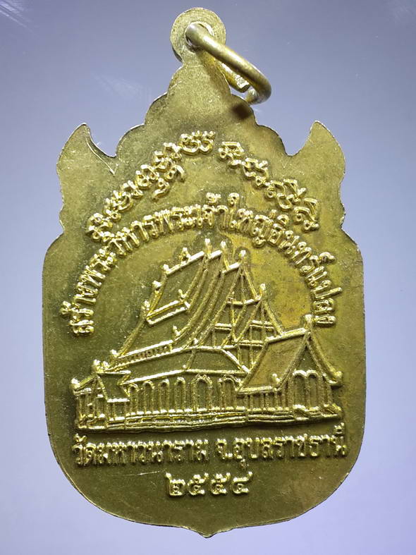 เหรียญทองฝาบาตรพระเจ้าใหญ่อินแปลง วัดมหาวนาราม จ.อุบลราชธานี สร้างปี 2554 ที่ระลึกสร้างพระวิหารพระเจ้าใหญ่อินแปลง