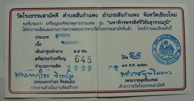 ศูนย์พระเครื่อง phantippowertools.com พระแท้ ตามมาตรฐานสากล ยินดีต้อนรับ นักนิยมสะสมพระเครื่องทุกท่าน เราบริการให้เช่าบูชา พระเครื่อง พระกรุ พระเนื้อดิน เหรียญคณาจารย์ ต่างๆ ในราคาย่อมเยาว์ มีทั้งประเภทรับประกันแท้ และ ประเภทวัดดวง ( ไม่มีการรับประกัน ) สำหรับพระเครื่องที่อยู่ในหน้านี้ รับประกันแท้ทุกองค์ ตามมาตรฐานสากล ติดต่อสอบถามที่ โทรศัพท์ 056-310760 มือถือ 081- 7075038 จตุคามรามเทพ รุ่น มหาจักรพรรดิ์ศรีวิชัยสุวรรณภูมิ เหรียญบาตรนํ้ามนต์ เนื้อทองแดงเทวรังสี ขนาด 5.5 ซ.ม. เข้มขลังดุดัน และ อ่อนช้อย หมายเลข 645 รายการที่ U 1305 ราคาเช่าบูชากรุณาโทรสอบถาม ค่าจัดส่งทางไปรษณีย์ EMS ทั่วประเทศ ฟรี ............ ยกเว้น พระเครื่องที่มีนํ้าหนักมาก และ จตุคามรามเทพ กรณี สั่งซื้อเช่าบูชาจำนวนมาก ขอจัดส่งแบบ ลงทะเบียน หรือ LOGISTIC โอนเงินมาที่ ธนาคารกสิกรไทย สาขาถนนสายเอเซีย หมายเลขบัญชีออมทรัพย์เลขที่ 403-2-25342-9 หรือ