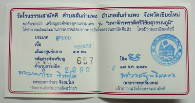 ศูนย์พระเครื่อง phantippowertools.com พระแท้ ตามมาตรฐานสากล ยินดีต้อนรับ นักนิยมสะสมพระเครื่องทุกท่าน เราบริการให้เช่าบูชา พระเครื่อง พระกรุ พระเนื้อดิน เหรียญคณาจารย์ ต่างๆ ในราคาย่อมเยาว์ มีทั้งประเภทรับประกันแท้ และ ประเภทวัดดวง ( ไม่มีการรับประกัน ) สำหรับพระเครื่องที่อยู่ในหน้านี้ รับประกันแท้ทุกองค์ ตามมาตรฐานสากล ติดต่อสอบถามที่ โทรศัพท์ 056-310760 มือถือ 081- 7075038 จตุคามรามเทพ รุ่น มหาจักรพรรดิ์ศรีวิชัยสุวรรณภูมิ เหรียญบาตรนํ้ามนต์ เนื้อทองแดงเทวรังสี ขนาด 5.5 ซ.ม. เข้มขลังดุดัน และ อ่อนช้อย หมายเลข 657 รายการที่ U 1307 ราคาเช่าบูชากรุณาโทรสอบถาม ค่าจัดส่งทางไปรษณีย์ EMS ทั่วประเทศ ฟรี ............ ยกเว้น พระเครื่องที่มีนํ้าหนักมาก และ จตุคามรามเทพ กรณี สั่งซื้อเช่าบูชาจำนวนมาก ขอจัดส่งแบบ ลงทะเบียน หรือ LOGISTIC โอนเงินมาที่ ธนาคารกสิกรไทย สาขาถนนสายเอเซีย หมายเลขบัญชีออมทรัพย์เลขที่ 403-2-25342-9 หรือ