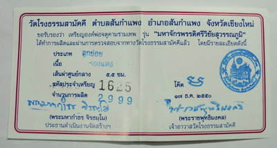 ศูนย์พระเครื่อง phantippowertools.com พระแท้ ตามมาตรฐานสากล ยินดีต้อนรับ นักนิยมสะสมพระเครื่องทุกท่าน เราบริการให้เช่าบูชา พระเครื่อง พระกรุ พระเนื้อดิน เหรียญคณาจารย์ ต่างๆ ในราคาย่อมเยาว์ มีทั้งประเภทรับประกันแท้ และ ประเภทวัดดวง ( ไม่มีการรับประกัน ) สำหรับพระเครื่องที่อยู่ในหน้านี้ รับประกันแท้ทุกองค์ ตามมาตรฐานสากล ติดต่อสอบถามที่ โทรศัพท์ 056-310760 มือถือ 081- 7075038 จตุคามรามเทพ รุ่น มหาจักรพรรดิ์ศรีวิชัยสุวรรณภูมิ เหรียญบาตรนํ้ามนต์ เนื้อทองแดงเทวรังสี ขนาด 5.5 ซ.ม. เข้มขลังดุดัน และ อ่อนช้อย หมายเลข 1625 รายการที่ U 1335 ราคาเช่าบูชากรุณาโทรสอบถาม ค่าจัดส่งทางไปรษณีย์ EMS ทั่วประเทศ ฟรี ............ ยกเว้น พระเครื่องที่มีนํ้าหนักมาก และ จตุคามรามเทพ กรณี สั่งซื้อเช่าบูชาจำนวนมาก ขอจัดส่งแบบ ลงทะเบียน หรือ LOGISTIC โอนเงินมาที่ ธนาคารกสิกรไทย สาขาถนนสายเอเซีย หมายเลขบัญชีออมทรัพย์เลขที่ 403-2-25342-9 หรือ