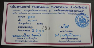 ศูนย์พระเครื่อง phantippowertools.com พระแท้ ตามมาตรฐานสากล ยินดีต้อนรับ นักนิยมสะสมพระเครื่องทุกท่าน เราบริการให้เช่าบูชา พระเครื่อง พระกรุ พระเนื้อดิน เหรียญคณาจารย์ ต่างๆ ในราคาย่อมเยาว์ มีทั้งประเภทรับประกันแท้ และ ประเภทวัดดวง ( ไม่มีการรับประกัน ) สำหรับพระเครื่องที่อยู่ในหน้านี้ รับประกันแท้ทุกองค์ ตามมาตรฐานสากล ติดต่อสอบถามที่ โทรศัพท์ 056-310760 มือถือ 081- 7075038 จตุคามรามเทพ รุ่น มหาจักรพรรดิ์ศรีวิชัยสุวรรณภูมิ เหรียญบาตรนํ้ามนต์ เนื้อทองแดงเทวรังสี ขนาด 5.5 ซ.ม. เข้มขลังดุดัน และ อ่อนช้อย หมายเลข 780 รายการที่ W 1529 ราคาเช่าบูชากรุณาโทรสอบถาม ค่าจัดส่งทางไปรษณีย์ EMS ทั่วประเทศ ฟรี ............ ยกเว้น พระเครื่องที่มีนํ้าหนักมาก และ จตุคามรามเทพ กรณี สั่งซื้อเช่าบูชาจำนวนมาก ขอจัดส่งแบบ ลงทะเบียน หรือ LOGISTIC โอนเงินมาที่ ธนาคารกสิกรไทย สาขาถนนสายเอเซีย หมายเลขบัญชีออมทรัพย์เลขที่ 403-2-25342-9 หรือ