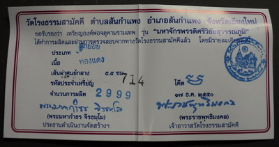 ศูนย์พระเครื่อง phantippowertools.com พระแท้ ตามมาตรฐานสากล ยินดีต้อนรับ นักนิยมสะสมพระเครื่องทุกท่าน เราบริการให้เช่าบูชา พระเครื่อง พระกรุ พระเนื้อดิน เหรียญคณาจารย์ ต่างๆ ในราคาย่อมเยาว์ มีทั้งประเภทรับประกันแท้ และ ประเภทวัดดวง ( ไม่มีการรับประกัน ) สำหรับพระเครื่องที่อยู่ในหน้านี้ รับประกันแท้ทุกองค์ ตามมาตรฐานสากล ติดต่อสอบถามที่ โทรศัพท์ 056-310760 มือถือ 081- 7075038 จตุคามรามเทพ รุ่น มหาจักรพรรดิ์ศรีวิชัยสุวรรณภูมิ เหรียญบาตรนํ้ามนต์ เนื้อทองแดงเทวรังสี ขนาด 5.5 ซ.ม. เข้มขลังดุดัน และ อ่อนช้อย หมายเลข 714 รายการที่ W 1539 ราคาเช่าบูชากรุณาโทรสอบถาม ค่าจัดส่งทางไปรษณีย์ EMS ทั่วประเทศ ฟรี ............ ยกเว้น พระเครื่องที่มีนํ้าหนักมาก และ จตุคามรามเทพ กรณี สั่งซื้อเช่าบูชาจำนวนมาก ขอจัดส่งแบบ ลงทะเบียน หรือ LOGISTIC โอนเงินมาที่ ธนาคารกสิกรไทย สาขาถนนสายเอเซีย หมายเลขบัญชีออมทรัพย์เลขที่ 403-2-25342-9 หรือ