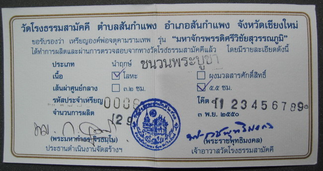 ศูนย์พระเครื่อง phantippowertools.com พระแท้ ตามมาตรฐานสากล ยินดีต้อนรับ นักนิยมสะสมพระเครื่องทุกท่าน เราบริการให้เช่าบูชา พระเครื่อง พระกรุ พระเนื้อดิน เหรียญคณาจารย์ ต่างๆ ในราคาย่อมเยาว์ มีทั้งประเภทรับประกันแท้ และ ประเภทวัดดวง ( ไม่มีการรับประกัน ) สำหรับพระเครื่องที่อยู่ในหน้านี้ รับประกันแท้ทุกองค์ ตามมาตรฐานสากล ติดต่อสอบถามที่ โทรศัพท์ 056-310760 มือถือ 081- 7075038 จตุคามรามเทพ รุ่น มหาจักรพรรดิ์ศรีวิชัยสุวรรณภูมิ เหรียญบาตรนํ้ามนต์ เนื้อชนวนพระบูชา นำฤกษ์ ขนาด 5.5 ซ.ม. เข้มขลังดุดัน และ อ่อนช้อย หมาบเลขกำกับเหรียญ 6 ตอกโค๊ตพิเศษ ๑๒๓๔๕๖๗๘๙ สภาพสภาพคัดสวย รายการที่ D 394 ราคาเช่าบูชา 2,200 บาท นี่คืออีกหนึ่งผลงานของช่างเม้าท์ จำนวนการสร้าง 29 องค์