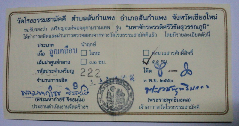 ศูนย์พระเครื่อง phantippowertools.com พระแท้ ตามมาตรฐานสากล ยินดีต้อนรับ นักนิยมสะสมพระเครื่องทุกท่าน เราบริการให้เช่าบูชา พระเครื่อง พระกรุ พระเนื้อดิน เหรียญคณาจารย์ ต่างๆ ในราคาย่อมเยาว์ มีทั้งประเภทรับประกันแท้ และ ประเภทวัดดวง ( ไม่มีการรับประกัน ) สำหรับพระเครื่องที่อยู่ในหน้านี้ รับประกันแท้ทุกองค์ ตามมาตรฐานสากล ติดต่อสอบถามที่ โทรศัพท์ 056-310760 มือถือ 081- 7075038 จตุคามรามเทพ รุ่น มหาจักรพรรดิ์ศรีวิชัยสุวรรณภูมิ พิมพ์ พระปิดตาพังพกาฬ สองหน้า เนื้อกระเบื้องเคลือบเหลือง หมายเลข 222 จำนวนการผลิต 9 องค์ รายการทีี่ G 501 ราคาเช่าบูชา 300 บาท