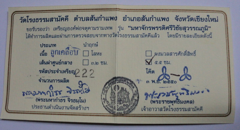 ศูนย์พระเครื่อง phantippowertools.com พระแท้ ตามมาตรฐานสากล ยินดีต้อนรับ นักนิยมสะสมพระเครื่องทุกท่าน เราบริการให้เช่าบูชา พระเครื่อง พระกรุ พระเนื้อดิน เหรียญคณาจารย์ ต่างๆ ในราคาย่อมเยาว์ มีทั้งประเภทรับประกันแท้ และ ประเภทวัดดวง ( ไม่มีการรับประกัน ) สำหรับพระเครื่องที่อยู่ในหน้านี้ รับประกันแท้ทุกองค์ ตามมาตรฐานสากล ติดต่อสอบถามที่ โทรศัพท์ 056-310760 มือถือ 081- 7075038 จตุคามรามเทพ รุ่น มหาจักรพรรดิ์ศรีวิชัยสุวรรณภูมิ พิมพ์ พระปิดตาพังพกาฬ สองหน้า เนื้อกระเบื้องเคลือบเหลืองโฮ่งมังกร หมายเลข 222 จำนวนการผลิต 9 องค์ รายการทีี่ G 503 ราคาเช่าบูชา 300 บาท