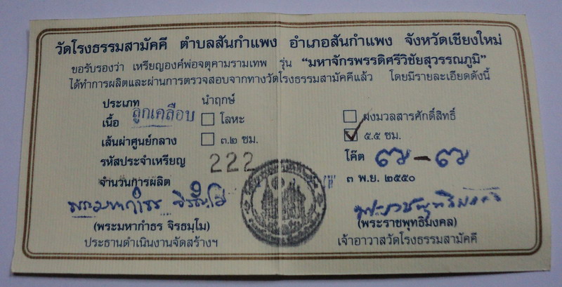 จตุคามรามเทพ รุ่น มหาจักรพรรดิ์ศรีวิชัยสุวรรณภูมิ พิมพ์องค์พ่อ เนื้อกระเบื้องเคลือบแดง หมายเลข 222 จำนวนการผลิต 9 องค์ รายการทีี่ G 508 ราคาเช่าบูชา 400 บาท
