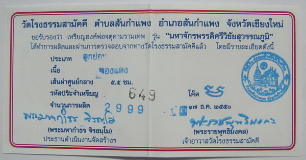 จตุคามรามเทพ รุ่น มหาจักรพรรดิ์ศรีวิชัยสุวรรณภูมิ เหรียญบาตรนํ้ามนต์ เนื้อทองแดง ขนาด 5.5 ซ.ม. เข้มขลังดุดัน และ อ่อนช้อย หมาบเลขกำกับเหรียญ 649 สภาพคัดสวย รายการที่ H 556 ราคาเช่าบูชากรุณาโทรสอบถาม นี่คืออีกหนึ่งผลงานของช่างเม้าท์ จำนวนการสร้าง 2,999 องค์