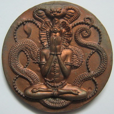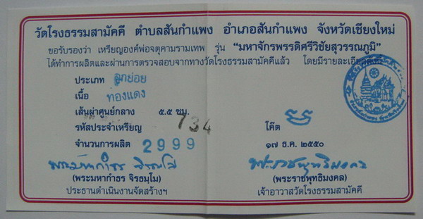 จตุคามรามเทพ รุ่น มหาจักรพรรดิ์ศรีวิชัยสุวรรณภูมิ เหรียญบาตรนํ้ามนต์ เนื้อทองแดง ขนาด 5.5 ซ.ม. เข้มขลังดุดัน และ อ่อนช้อย หมาบเลขกำกับเหรียญ 734 สภาพคัดสวย รายการที่ H 564 ราคาเช่าบูชากรุณาโทรสอบถาม นี่คืออีกหนึ่งผลงานของช่างเม้าท์ จำนวนการสร้าง 2,999 องค์