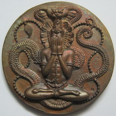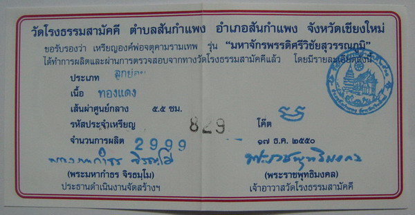 จตุคามรามเทพ รุ่น มหาจักรพรรดิ์ศรีวิชัยสุวรรณภูมิ เหรียญบาตรนํ้ามนต์ เนื้อทองแดง ขนาด 5.5 ซ.ม. เข้มขลังดุดัน และ อ่อนช้อย หมาบเลขกำกับเหรียญ 829 สภาพคัดสวย รายการที่ H 573 ราคาเช่าบูชากรุณาโทรสอบถาม นี่คืออีกหนึ่งผลงานของช่างเม้าท์ จำนวนการสร้าง 2,999 องค์