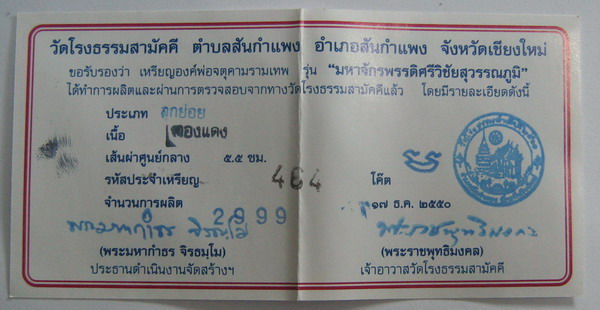 จตุคามรามเทพ รุ่น มหาจักรพรรดิ์ศรีวิชัยสุวรรณภูมิ เหรียญบาตรนํ้ามนต์ เนื้อทองแดง ขนาด 5.5 ซ.ม. เข้มขลังดุดัน และ อ่อนช้อย หมาบเลขกำกับเหรียญ 464 สภาพคัดสวย รายการที่ H 586 ราคาเช่าบูชากรุณาโทรสอบถาม นี่คืออีกหนึ่งผลงานของช่างเม้าท์ จำนวนการสร้าง 2,999 องค์ ค่าจัดส่งทางไปรษณีย์ EMS ทั่วประเทศ ฟรี ............ ยกเว้น พระเครื่องที่มีนํ้าหนักมาก และ จตุคามรามเทพ กรณี สั่งซื้อเช่าบูชาจำนวนมาก ขอจัดส่งแบบ ลงทะเบียน หรือ LOGISTIC โอนเงินมาที่ ธนาคารกสิกรไทย สาขาถนนสายเอเซีย หมายเลขบัญชีออมทรัพย์เลขที่ 403-2-25342-9 หรือ