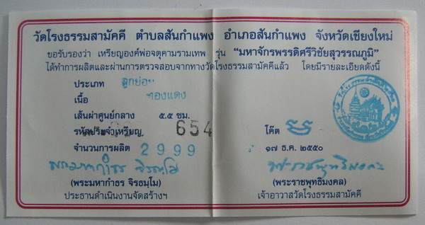 จตุคามรามเทพ รุ่น มหาจักรพรรดิ์ศรีวิชัยสุวรรณภูมิ เหรียญบาตรนํ้ามนต์ เนื้อทองแดง ขนาด 5.5 ซ.ม. เข้มขลังดุดัน และ อ่อนช้อย หมาบเลขกำกับเหรียญ 654 สภาพคัดสวย รายการที่ H 587 ราคาเช่าบูชากรุณาโทรสอบถาม นี่คืออีกหนึ่งผลงานของช่างเม้าท์ จำนวนการสร้าง 2,999 องค์