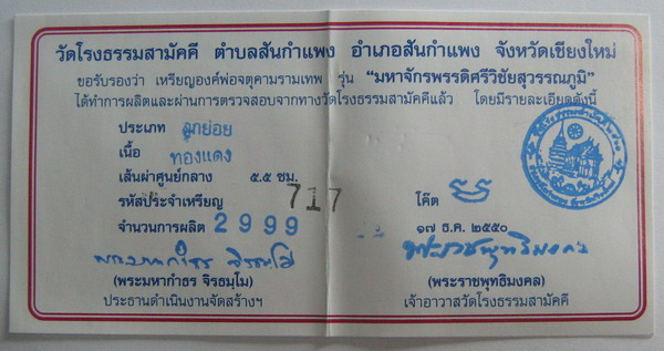 จตุคามรามเทพ รุ่น มหาจักรพรรดิ์ศรีวิชัยสุวรรณภูมิ เหรียญบาตรนํ้ามนต์ เนื้อทองแดง ขนาด 5.5 ซ.ม. เข้มขลังดุดัน และ อ่อนช้อย หมาบเลขกำกับเหรียญ 717 สภาพคัดสวย รายการที่ H 595 ราคาเช่าบูชากรุณาโทรสอบถาม นี่คืออีกหนึ่งผลงานของช่างเม้าท์ จำนวนการสร้าง 2,999 องค์