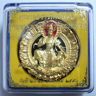 จตุคามรามเทพ รุ่น เสวยสุข เหรียญกะไหล่ทองลงยา ขนาด 3.9 ซ.ม. เข้มขลังดุดัน และ อ่อนช้อย มีหมายเลขกำกับเหรียญ สภาพคัดสวย รายการที่ I 611 ราคาเช่าบูชา 250 บาท ( โค๊ต ก. กรรมการ ) จตุคามรามเทพ รุ่นเสวยสุข พิมพ์ทรงสวย-จุดประสงค์ชัดเจน มีความหมายในตัวแบบพระโพธิสัตว์ แล้วนำรูปปั้นมาบรรจงใส่ในรูปแบบเหรียญโลหะและเนื้อว่านแว่นกลมทั้งขนาดเล็กและใหญ่ ทำให้มีมิติ ในมุมมองหลายด้านๆ ตรงก็แบบหนึ่งด้านข้างทแยงมุมก็แบบหนึ่ง เสมือนหนึ่งพระองค์ท่านยิ้มให้ ด้วยความมีเมตตา