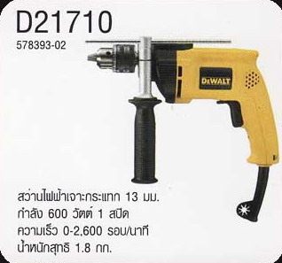 สว่านไฟฟ้า เจาะกระแทก DEWALT รุ่น D 21710 ราคาเครื่องละ 2,490 บาท ราคา NET ยังไม่รวม VAT