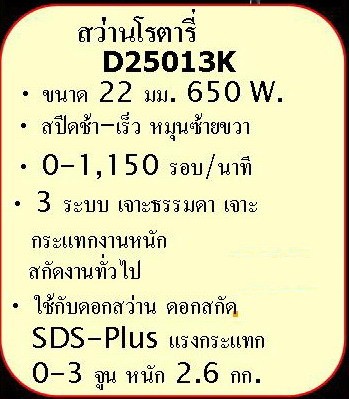 สว่านโรตารี่ DEWALT รุ่น D 25013 K-B1 ราคาเครื่องละ 4,525 บาท ราคา NET ยังไม่รวม VAT