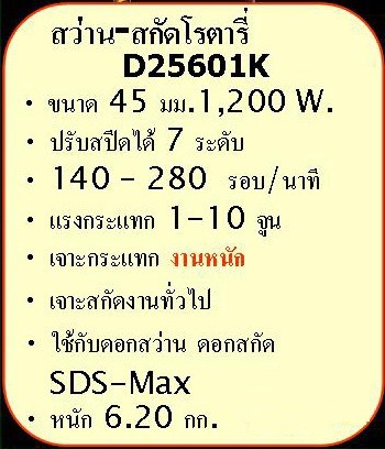 สว่านโรตารี่ DEWALT รุ่น D 25601 K-B1 ราคาเครื่องละ 20,085 บาท ราคา NET ยังไม่รวม VAT