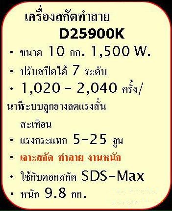 เครื่องสกัดคอนกรีต DEWALT รุ่น D 25900 K ราคาเครื่องละ 25,210 บาท ราคา NET ยังไม่รวม VAT