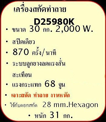 เครื่องสกัดคอนกรีต DEWALT รุ่น D 25980 K ราคาเครื่องละ 58,185 บาท ราคา NET ยังไม่รวม VAT