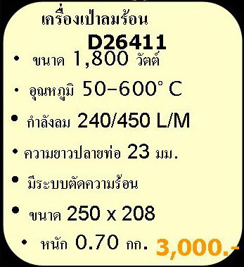 เครื่องเป่าลมร้อน DEWALT รุ่น D26411 ราคาเครื่องละ 1,950 บาท ราคา NET ยังไม่รวม VAT