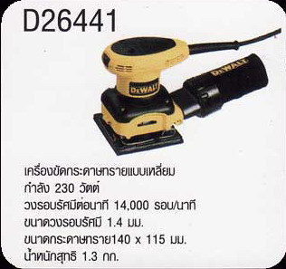 เครื่องขัดกระดาษทรายแบบทรงเหลี่ยม DEWALT รุ่น D26441 ราคาเครื่องละ 2,600 บาท ราคา NET ยังไม่รวม VAT