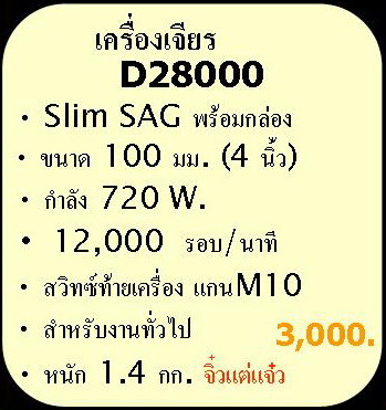 เครื่องเจียร์ไฟฟ้า DEWALT รุ่น D 28000 ราคาเครื่องละ 1,950 บาท ราคา NET ยังไม่รวม VAT