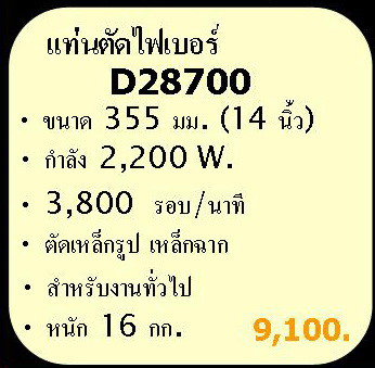 ไฟเบอร์ตัดเหล็ก DEWALT รุ่น D28700 ราคาเครื่องละ 5,505 บาท ราคา NET ยังไม่รวม VAT
