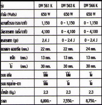 สว่านโรตารี่ DEWALT รุ่น DW 566K ราคาเครื่องละ 8,750 บาท