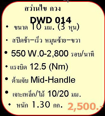 สว่านไฟฟ้า ขนาด 10 M DEWALT รุ่น DWD 014 ราคาเครื่องละ 1,775 บาท ราคา NET ยังไม่รวม VAT