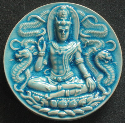 เฉลิมราชย์จอมราชันย์ โคตรเศรษฐียุคแปด เนื้อผงดินเผาเคลือบสีฟ้า ขนาด 5.5 ซ.ม. ราคาเช่าบูชา 99 บาท