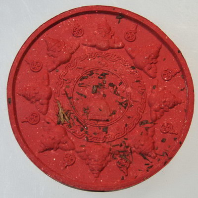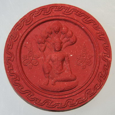 จตุคามรามเทพ รุ่น จอมจักรพรรดิ์มหาบารมี ปีพ.ศ. 2550 เนื้อว่านแดง หลังโรยไม้ตะเคียน พิมพ์องค์พ่อนาคปรกขนาด 4 ซ.ม.
