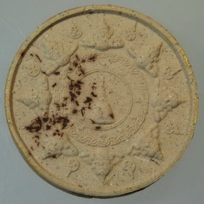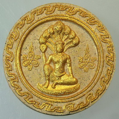 จตุคามรามเทพ รุ่น จอมจักรพรรดิ์มหาบารมี ปีพ.ศ. 2550 เนื้อว่านขาวปัดทอง หลังโรยไม้ตะเคียน พิมพ์องค์พ่อนาคปรกขนาด 4 ซ.ม.