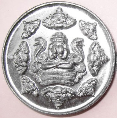 เหรียญ แร่ ( ดีบุก ) ขนาด 3.2ซ.ม. จตุคามรามเทพ รุ่น ทรัพย์เทวา พิมพ์พังพกาฬ