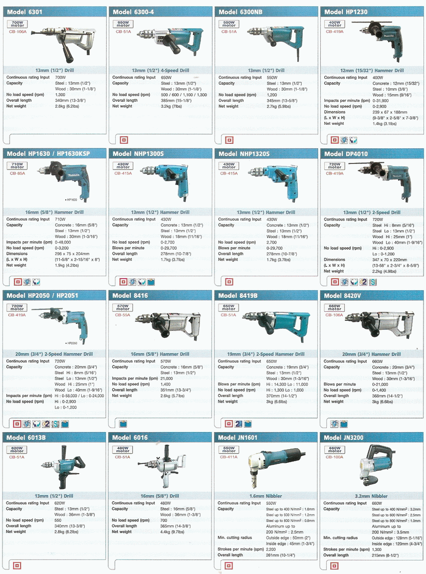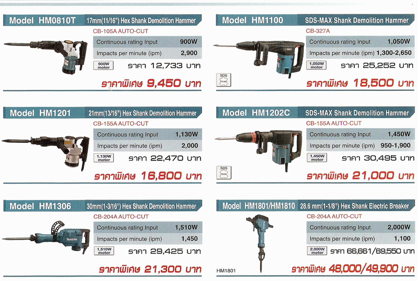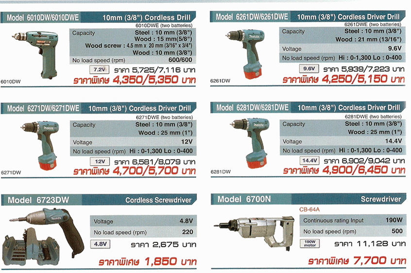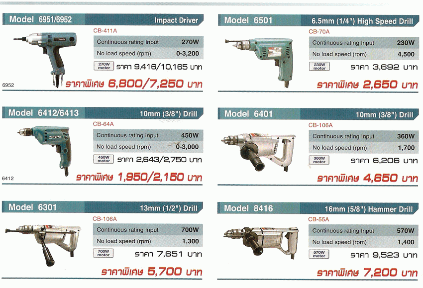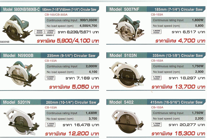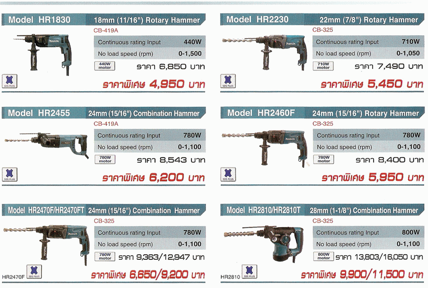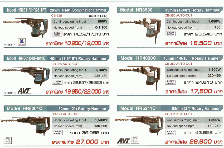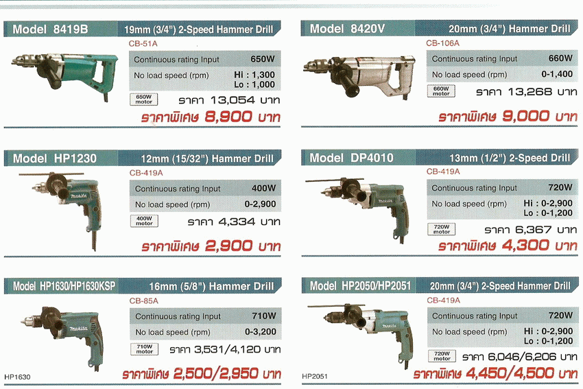 เครื่องมือไฟฟ้า makita มีให้เลือกหลายรุ่น กรุณาโทรสอบถาม เพราะมีบางรุ่น ผู้นำเข้าภายในประเทศ ยังมิได้นำเข้ามาครับ