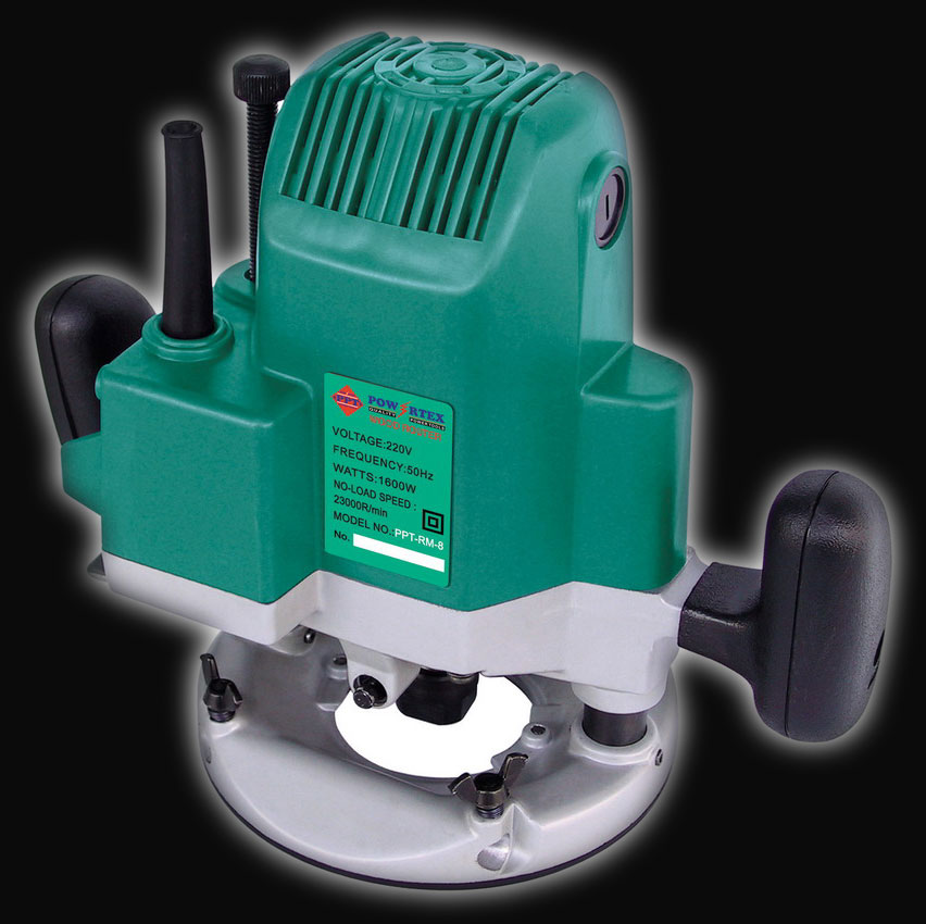 ราวเตอร์ POWERTEX รุ่น PPT-RM-8 รูปทรงเท่ากันกับ 3612 BR MAKITA เสียงแน่น รอบจัด 220V 50HZ 1600W 23000 RPM จับแกนดอกราวเตอร์ 12.7 MM ราคาเครื่องละ 3,630 บาท สินค้าผลิตจากประเทศอินเดีย รับประกันทุ่น และ ฟิลคอยด์นาน 6 เดือน